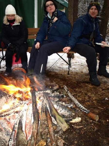 Niedzielny poranek 9 grudnia przywitał nas mrozem, lecz mimo to na miejscu zbiórki II Mazowieckiego Marszu Nordic Walking w Wesołej pojawiła się duża grupa uczestników (80 osób). Przywitani przez św. Mikołaja już na przystanku autobusowym, mimo mrozu sięgającego -10 stopni, wszyscy mieliśmy doskonałe nastroje. Troszkę zmarznięci, szybko zapisywaliśmy się na listy uczestnictwa, nieposiadający własnych kijów otrzymali Fundacyjne i rozpoczęliśmy rozgrzewkę. Towarzyszyli nam reporterzy z lokalnej strony Info-Stara Miłosna. Wyrzuciliśmy podczas ćwiczeń złą energię, zrobiliśmy krótkie warsztaty techniczne i ruszyliśmy w drogę, gdy tylko wybiła godzina zero, czyli o 10.30... W nieskazitelnie biały, cichy, zimowy las… Ale nie byliśmy pierwsi, ktoś przed nami przetarł drogę, dlatego mimo świeżego śniegu szło się nam całkiem nieźle. Wsparcie z przodu dla przewodnika stanowiła Jadwiga, końcówki tej licznej grupy pilnowały dwie Anie. Po kilku kilometrach trasy część uczestników poczuła się zmęczona. Podzieliliśmy się więc na dwa zespoły. Ci bardziej zmarznięci pomaszerowali wraz z Krzysztofem i Anią do baru na Dakowie. Pozostali – wraz z „opiekunami” Anią, Jadwigą, Mariolą oraz przewodnikiem Igorem – szybkim krokiem ruszyli w kierunku Zagórza. W barze na Dakowie - na mecie naszej trasy - po tym spacerku po mroziku mogliśmy się ogrzać i usmażyć kiełbaski przy wspaniałym ognisku. Część uczestników pozostała jednak we wnętrzu baru, mimo że ogień grzał powietrze w obrębie kilku metrów. Gorąca herbata z sokiem malinowym i słodkie rogaliki dopełniły poczęstunku. Rogaliki - mniam, mniam. Polecamy. Na zakończenie imprezy każdy nordic walker otrzymał pamiątkowy medal oraz książkę. Medal przepiękny, chyba ładniejszy niż w zeszłym roku, a książka stanowiła miłą niespodziankę przed zbliżającymi się świętami Bożego Narodzenia. Dziękujemy wszystkim gorąco za uczestnictwo w naszym marszu, zapraszamy na następne!!! Dziękujemy Miastu Stołecznemu Warszawie za wsparcie finansowe tej imprezy.