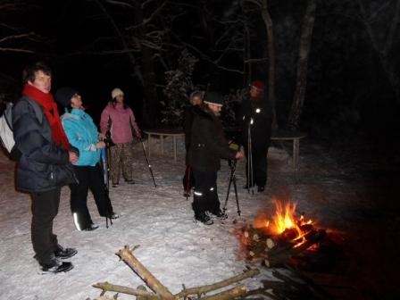 Osoby mieszkające w Radości wracają do domu z kijkami, przez ciemny las.........