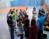 Pierwsza część warsztatów, czyli wprowadzenie teoretyczne, rozgrzewka i nauka techniki, została przeprowadzona w sali gimnastycznej szkoły.