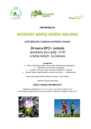 Zapraszamy na kolejne marsze nordic walking - marsze po zdrowie!