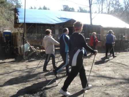 Podczas marszu nie zabrakło zabaw rekreacyjnych z użyciem kijków do nordic walking. Największej porcji śmiechu dostarczyła nam zabawa "Poznajmy się", podczas której należało zapamiętać imiona wszystkich uczestników marszu, a także wykazać się dobrą kondycją fizyczną, by podbiegając z kijkami wyprzedzić kilkanaście osób i stanąć na czele grupy. Było wesoło!