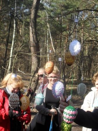 Na zakończenie marszu były ćwiczenia rozciągające i niespodzianka ...... wielkanocne drzewko, na którym zawieszone były piękne, kordonkowe pisanki. Poprzez losowanie pisanki trafiły do 10 właścicieli-szczęśliwców.